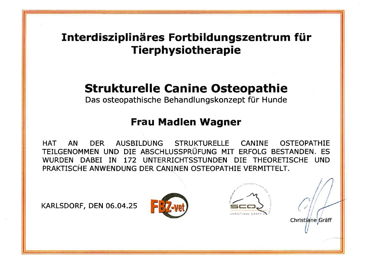 Bereits zu Beginn meiner Ausbildung zur Tiermedizinischen Fachangestellten interessierte mich die Anatomie und der Bewegungsapparat des Kleintieres im besonderen Maße.
